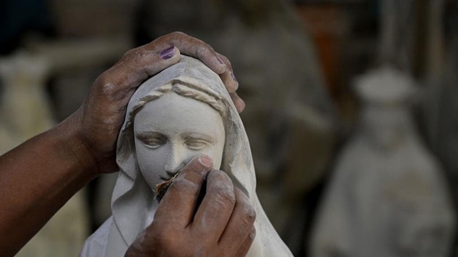 ケーララ州トリシュール(Thrissur)近郊チュワンナマンヌ(Chuvannamannu)では、fiberglass製のマリア像工房が製作されている。
