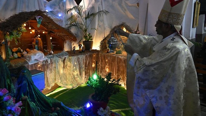 冒頭の写真(Photo: Sriram M.A.氏撮影)は、イエスの誕生時ベツレヘムの夜空に輝いたとされる星を再現すべく、さまざまな色でライトアップさらたカルナータカ州マイソールの聖フィロメナス教会(St. Philomenas Church)。