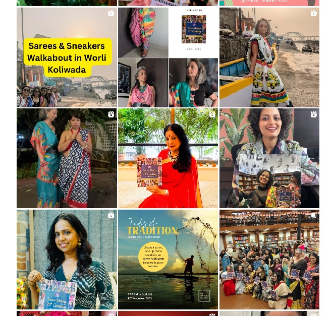 @saree_sakhiyaan こと Aarti Kripps Kapoor さんにより編纂された「21世紀に紡ぐサリーの物語」の登場人物となる、ファッショニスタたちのスタイルや哲学を集めた書籍の発行を記念して、バンガロールで開催されたイベントのもようだ。