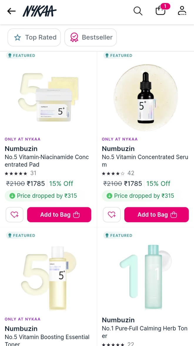 本日、いつも使っている拭き取り化粧水の在庫が切れそうになったので買い足そうかとNykaaをチェックしたら見つけたのが、今や日本のドラッグストアではおなじみとなった韓国コスメ「ナンバーズイン」のラインナップ。