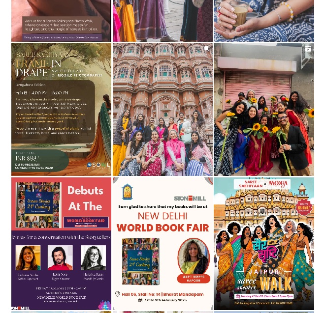 「日本の文化サロンや、東京や京都などにある、インドのテキスタイルを扱うブティックとのコラボ」や、「着物とサリーの交流イベント」などを開催し、それぞれの着付けスタイルなどを比較し合ったり、「サリーを愛する日本とインドの人々が集うオンラインの交流会(InstagramライブやZoom)」を開催し、スタイルやストーリー、ドレープのコツなどをシェアなどのアイデアがあるだろう。