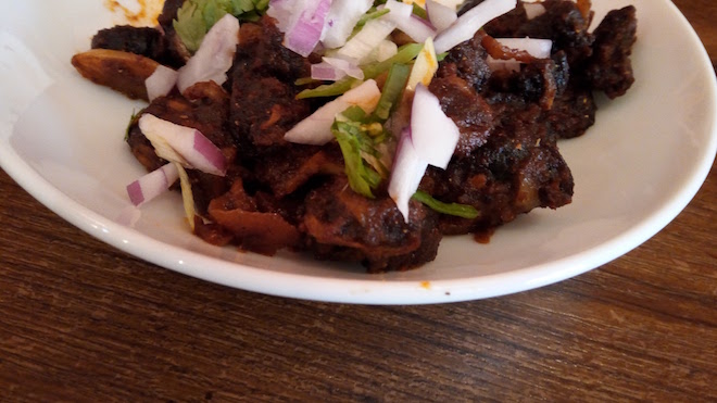 マトン肉をぶつ切りにして焼いたものや、チベット風餃子モモなど、日本にある一般的なインド料理店などではなかなかお目にかかれない品目の数々を注文。