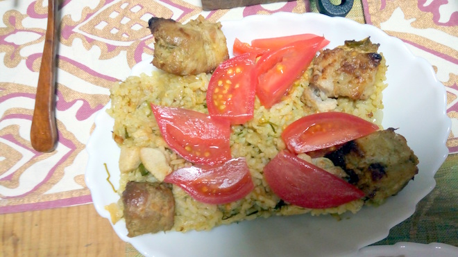 その方はバリ島出身なので、日本ではあまり紹介されていないというバリ家庭料理のナシゴレン風フライドライスと、新鮮な魚を丁寧にほぐし、各種スパイスと、レモングラスやパクチーのようなハーブ、そして玉ねぎなどとともに炒めた、シンプルだが絶品のおかずの2品を、ありがたくいただいた。
