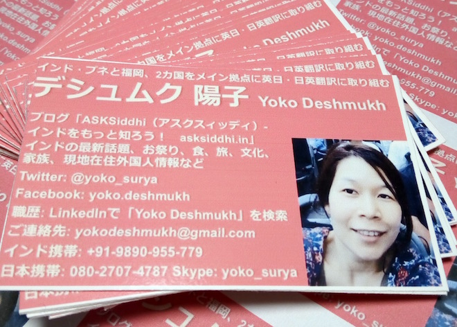 At the end of the previous (second) lesson fortnight ago, the “Guru” of self-branding Kasako-san (かさこさん) had given us homework to prepare an original business card draft. Before the class, we were told to take print of 30 copies of the draft to distribute among the other participants and galleries who would attend the class (they were called “Graduates 卒業生” and allowed to listen to the class any time even after completing the course.) This way, each of us got 20 brand-new business card samples on the table by the time the class started, and surely none of them resemble each other but unique.