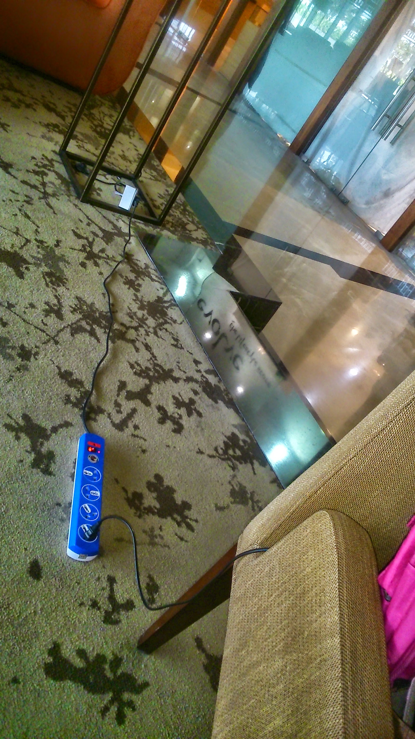 電源もある「職場」は、スターバックス・コーヒーと、フェニックス・マーケットシティの「カフェ・モシェズ(Cafe Moche's)」と、ここウェスティン・ホテルのロビー脇のカフェが加わりました。