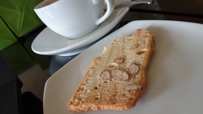 コーヒーにサービスでついてくる、このビスコッティ、サクサクしててとってもおいしかった。