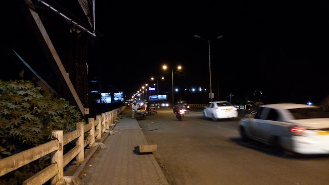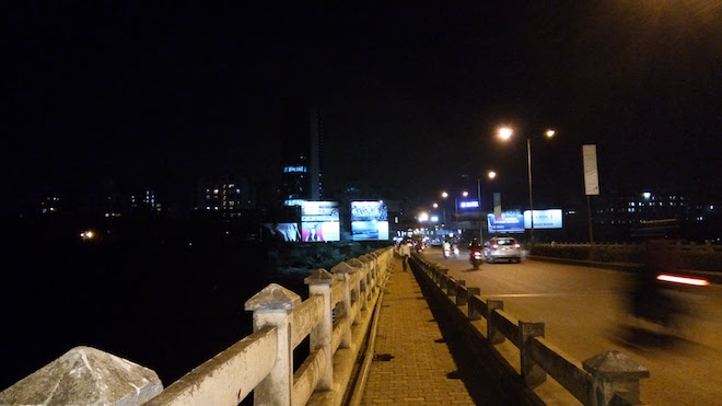 プネを知らない人など、どうでもよい人にとっては全く無意味だが、懐かしい人には懐かしいかもしれない、そう思って先日、夜のお散歩(飲み会の帰り道)に通りかかった、カルヤニナガルとコレガオン・パークを結ぶ、あのドブ臭い川に架かる橋の光景を本日はアップしている。