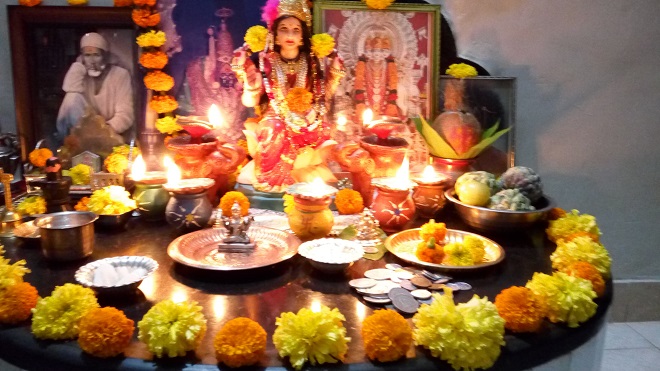 夕方、家族で一張羅のサリーやクルタに着飾って集まり、ささやかなプージャ(祈祷)をして、これからの1年も幸運の女神ラクシュミーのご加護があるように、みんなで祈った。