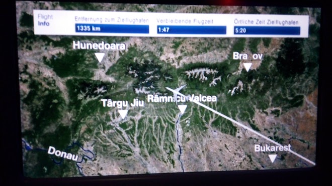 フランクフルトまでのフライトは8時間、途中気づいたらブカレスト上空を通過していて、蛇行する大河ドナウを少しずつ明けゆく紺色の空の下で確認できた。