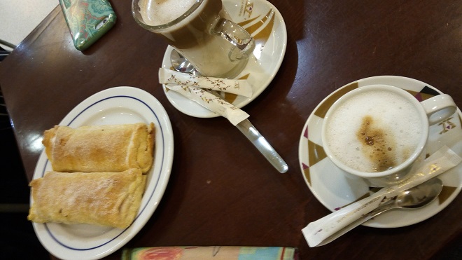 トラヴセイロとガラオン、ガロト(いずれも濃さの違うミルクコーヒー)。