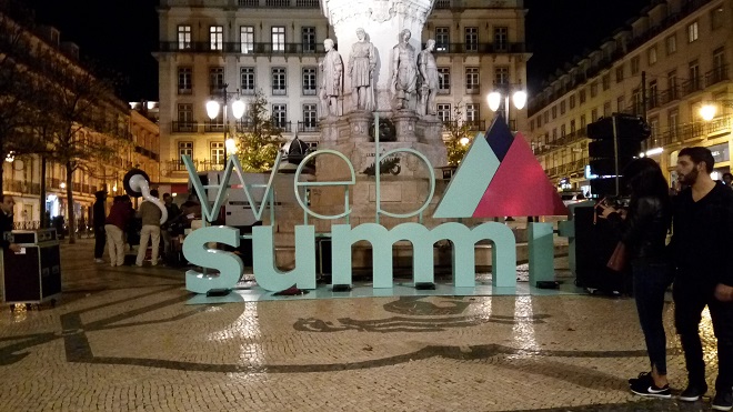 ペドロさんが降ろしてくれたカモンイス広場には「Web Summit」のでっかいレリーフが。