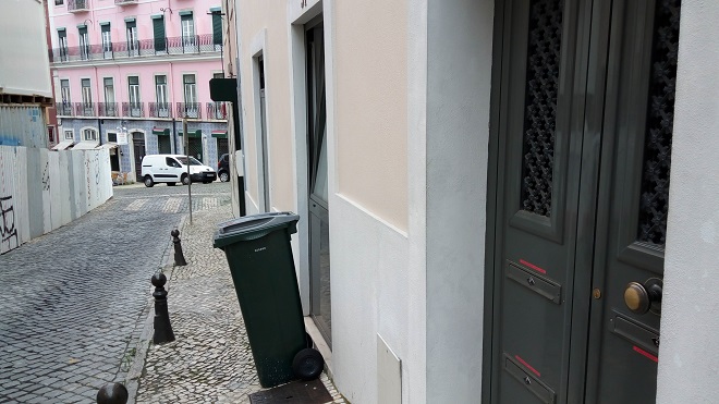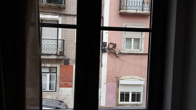 リスボン観光の中心地、ロシオ広場からケーブルカーのあるグロリア通りの坂を上がり、リベルダーデ通りと平行に走る石畳の路地を緩やかに坂を登っていき、右手にアレグリア広場が見えたところで突き当りを左に曲がり、角に「メルカード(ミニスーパー)」のある路地を右に入ってすぐのアパートだ。
