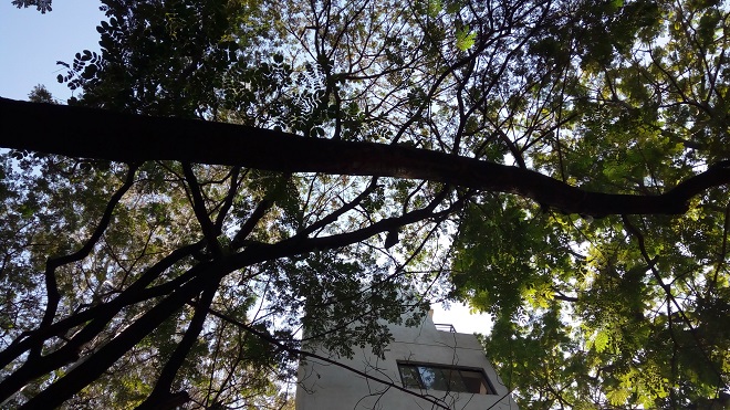 うっそうと茂るホウオウボク(Gulmohar)の枝が、ちょうどよい日よけに。