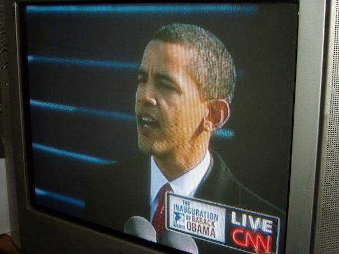 たまたま2009年当時の就任式の様子を映すテレビ画面を撮影した写真が残っていた。