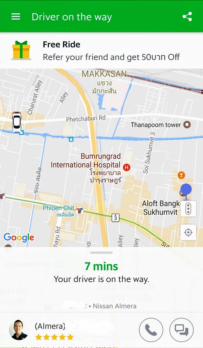ただしお察しの通り、配車依頼してから運転手が折り返し電話をかけてきてくれる際の会話は、ほぼタイ語となるため、タイ語が分からない当方としては、待っている場所のランドマークを連呼することしかできなかった。