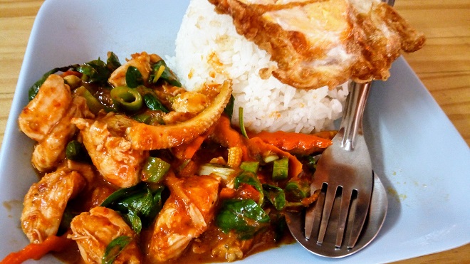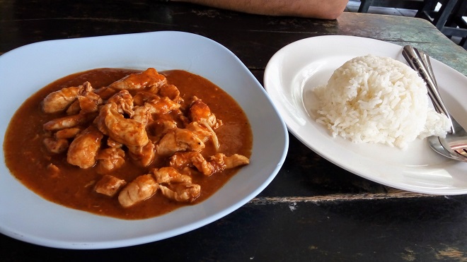 チキンが柔らかく、カレーのダシによく絡んでいる。