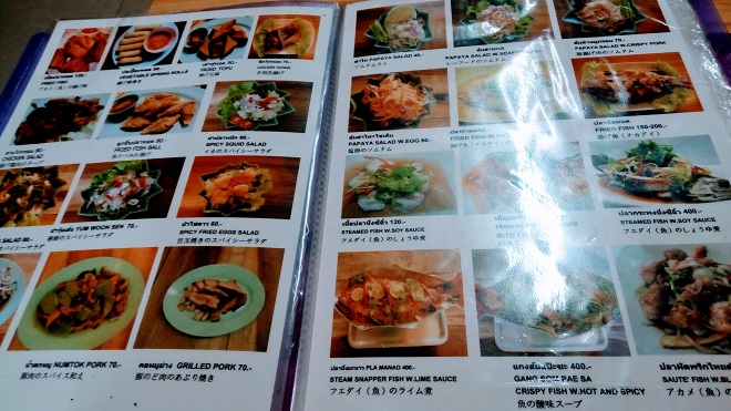 メニューの価格も露店のためか、観光客がよく利用するような店と比較すると良心的で、2人で食事して飲み物もつけて300バーツを上回ったことはない。