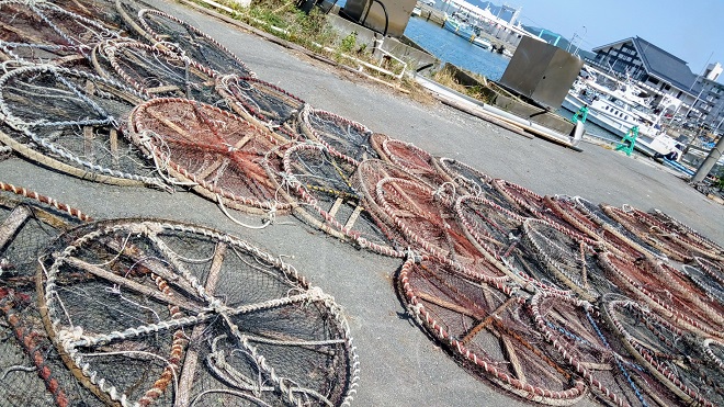 Fishing nets being dried under June sun.