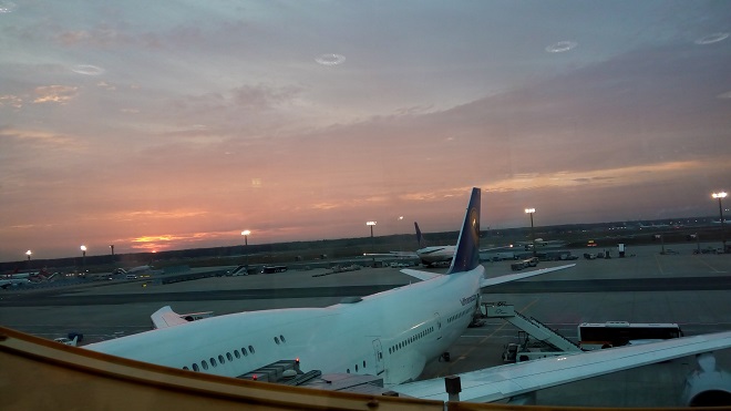 ※フランクフルト国際空港の朝日。
