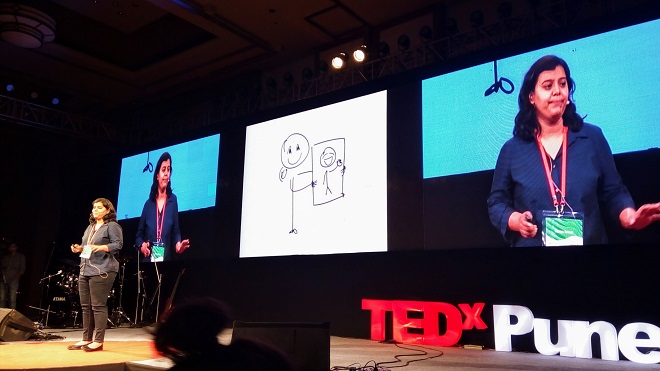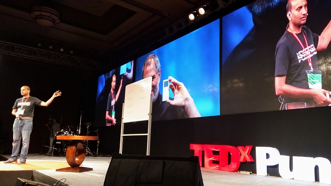 「TEDx Pune 2017」、午後1番のセッションは、あらゆる人のために役立つデザインを追求し、安価で丈夫な家やトイレを、タイやインドの低所得層向けに建設しているbillionBricksのプラソーン・クマール(Prasoon Kumar)さん。