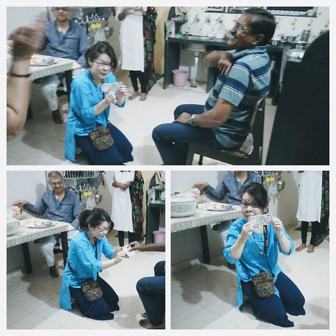 「インドの兄(シッダールタ妹の夫)」ラームさんから祝福のお金をもらうの図。