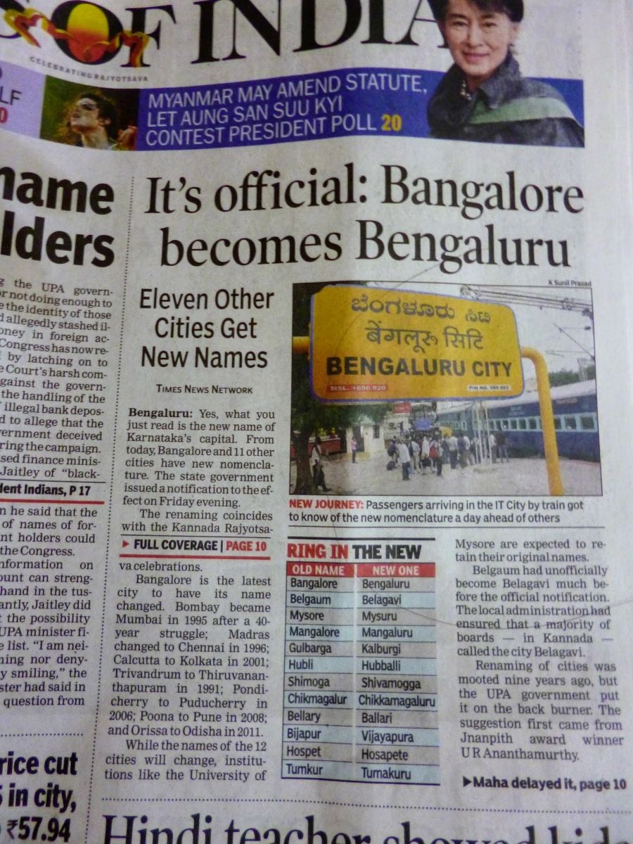 2014年、バンガロールがベンガルールになった瞬間にたまたま居合わせた。
