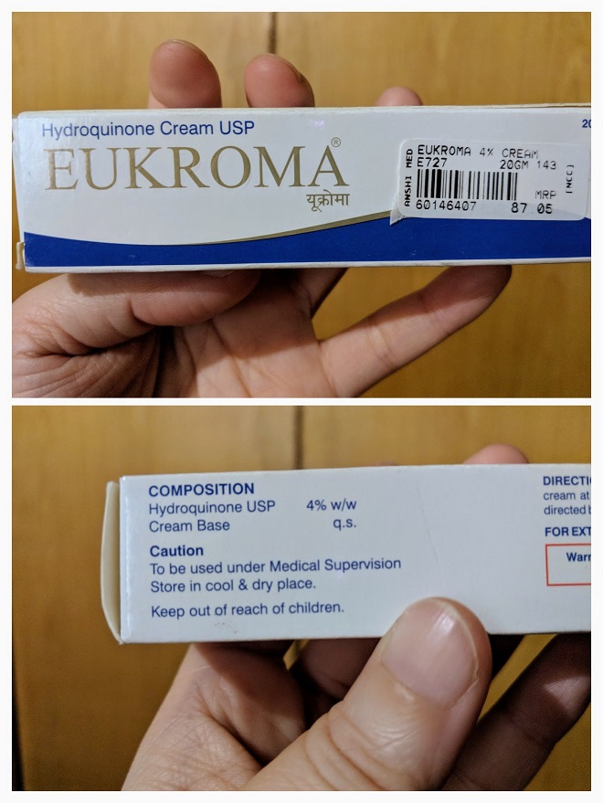 今朝、散歩に出たついでに、先日プリーから日本への帰路にプネーへ立ち寄ってくれたTさんおすすめの、シミが消えるという噂の軟膏「ユークロマ」を、近所の薬局で購入した。