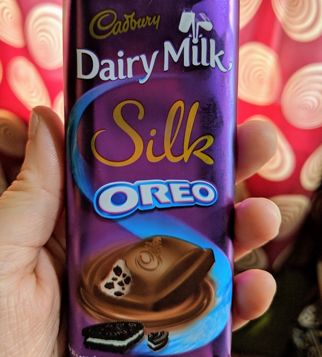 その中に「キャドバリーシルク・オレオ(Cadbury Silk Oreo)」という見慣れない商品を見かけたので、躊躇せず鷲掴みにして薬剤師さんに会計をお願いした。