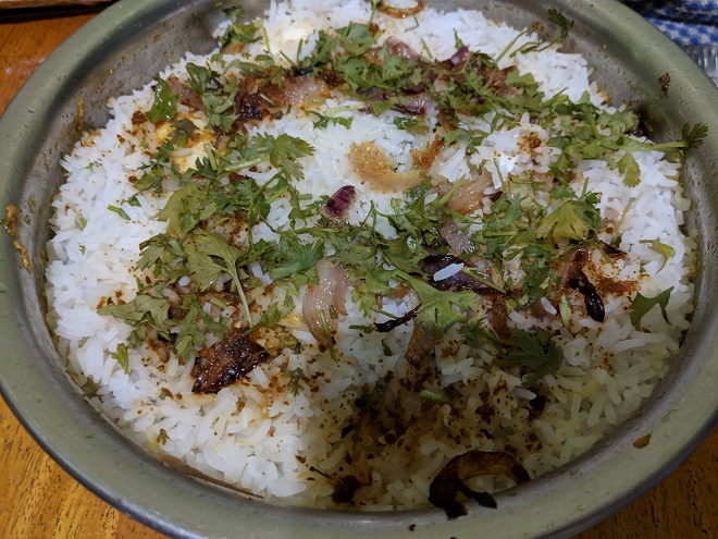 写真は自宅で炊いたエッグビルヤーニーです。熱々が特においしいですよね。
