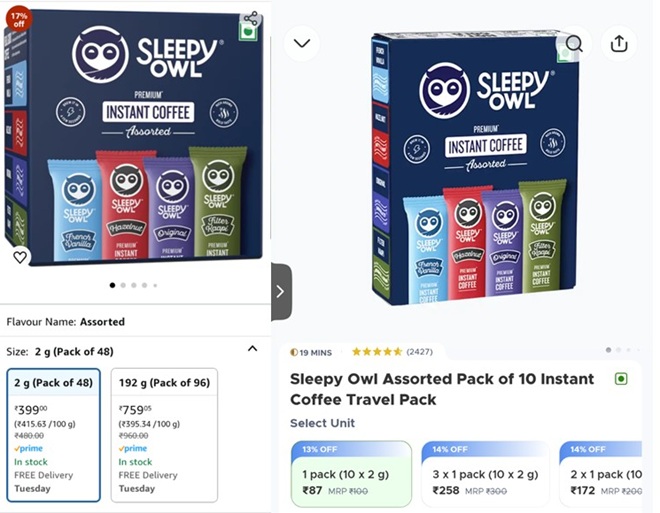画像は左がAmazon(インド)、右がネットスーパー「BlinkIt」です。