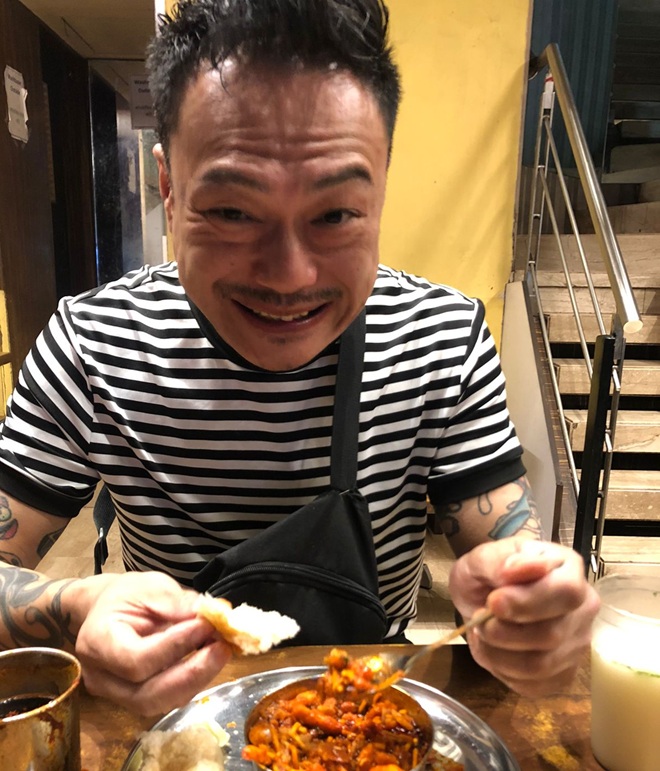 ご兄弟およびスタッフのみなさまが、健康第一に活躍することを祈ります。写真はKatakirrr Misalの激辛「Misal Pav」を堪能する隆志さん。