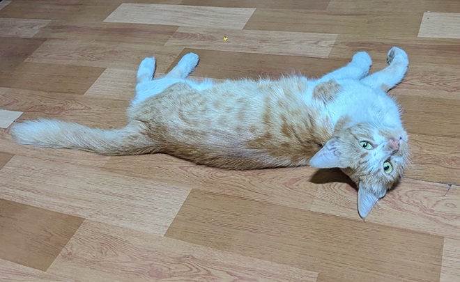 ナデナデさせておきながら急にネコパンチしちゃうよ、だってオレンジだもん(わるおさん、プネー在住)。