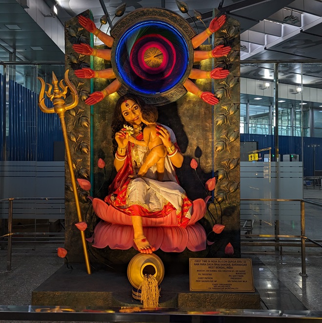 7月に訪れたバンガロール空港の国内線ターミナル出発ロビーにも、エア・インディア専用のセルフ手荷物預けマシンが設置してあって、警官の女性がいろいろ教えてくれたっけな。