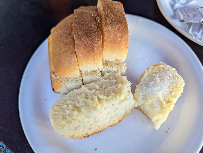 すてきなベーカリーが林立する以前のお気に入りといえば、写真のようにマスカ・パオ(Maska Pav、バターつきパン)に卓上のお砂糖を振って食べることだったな。
