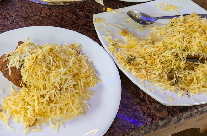 画像はひっそりついでに、近年改装してでっかくきれいになった老舗イラーニー料理店「Blue Nile」の絶品フィッシュ・ビルヤーニーです。